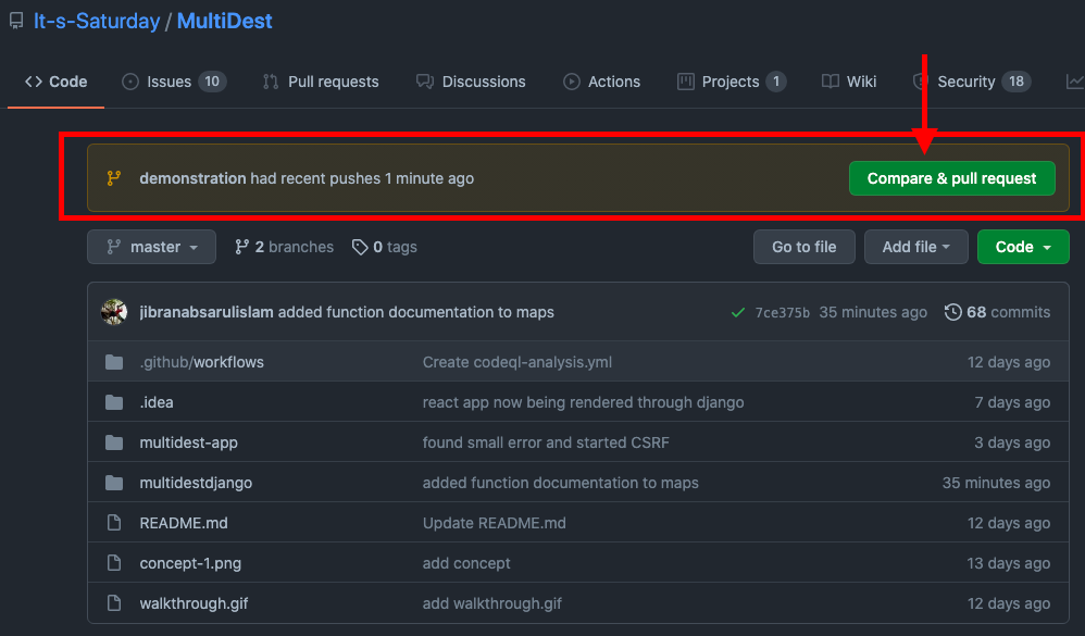 - You will see a prompt on the GitHub project page