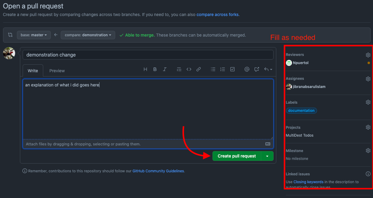 - A pull request is a process where you 'propose' your changes to reviewers you assign.